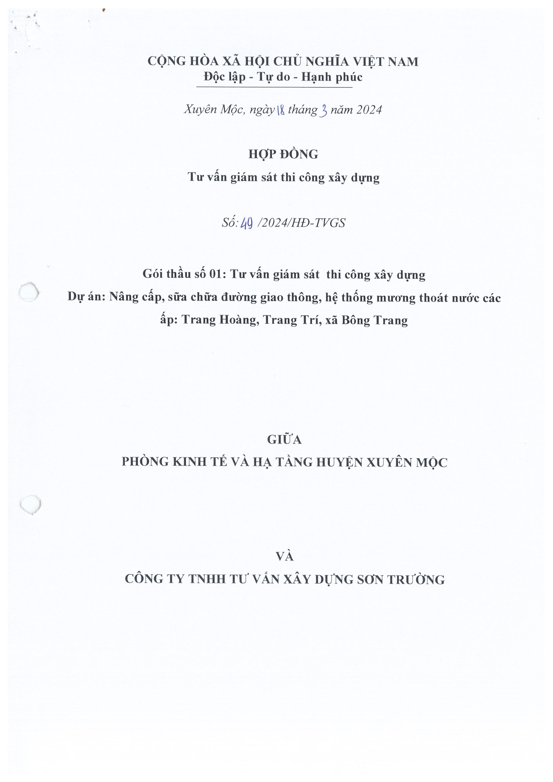 Trang chủ » Nâng cấp, sữa chữa đường giao thông, hệ thống mương thoát nước các ấp: Trang Hoàng, Trang Trí, xã Bông Trang Nâng cấp, sữa chữa đường giao thông, hệ thống mương thoát nước các ấp: Trang Hoàng, Trang Trí, xã Bông Trang Địa chỉ: Xã Bông Trang Thời gian: 18/03/2024 Nội dung hợp đồng